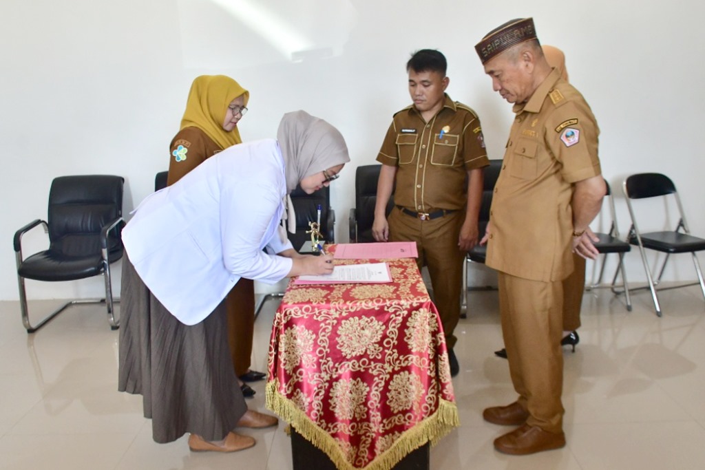 Pelantikan berlangsung di ruang kerja bupati dan disaksikan langsung oleh pejabat lama, dr. Yenni Ahmad.