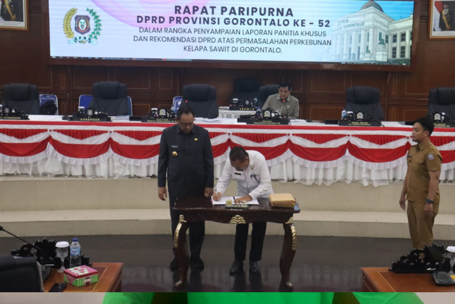 GORONTALO, BICARAA.COM – Panitia Khusus (Pansus) Tata Kelola Sawit DPRD Provinsi Gorontalo menuntaskan masa kerjanya dan resmi menyerahkan laporan hasil penyelidikan dalam rapat paripurna, Senin (6/10/2025).