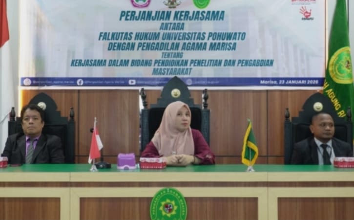 POHUWATO, BICARAA.COM – Fakultas Hukum Universitas Pohuwato (UNIPO) resmi menjalin perjanjian kerja sama dengan Pengadilan Agama Marisa.