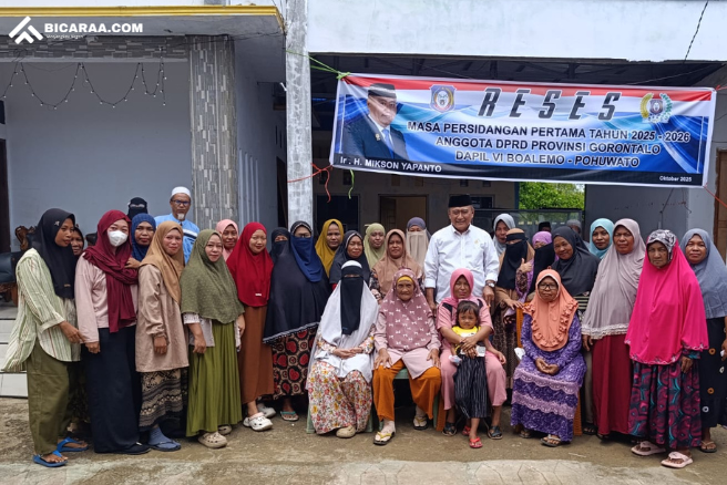 POHUWATO, BICARAA.COM — Ketua Komisi II DPRD Provinsi Gorontalo, Mikson Yapanto, dari Daerah Pemilihan VI Pohuwato–Boalemo, melaksanakan Reses Masa Persidangan Pertama Tahun Sidang 2025–2026 di Desa Lemito, Kecamatan Lemito, Kabupaten Pohuwato, Rabu (29/10/2025).