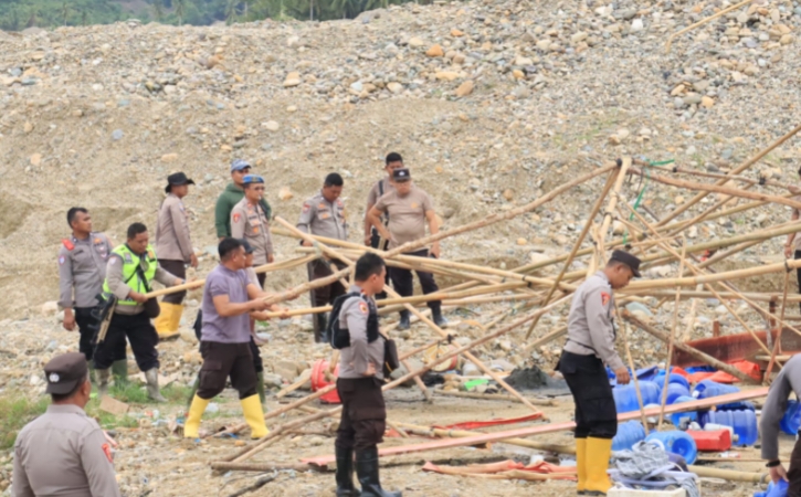 Polres Pohuwato bersama TNI dan Pemerintah Kabupaten Pohuwato menggelar operasi terpadu di lokasi pertambangan Botudulanga, Desa Hulawa, Kecamatan Buntulia, Rabu (07/01/2026).