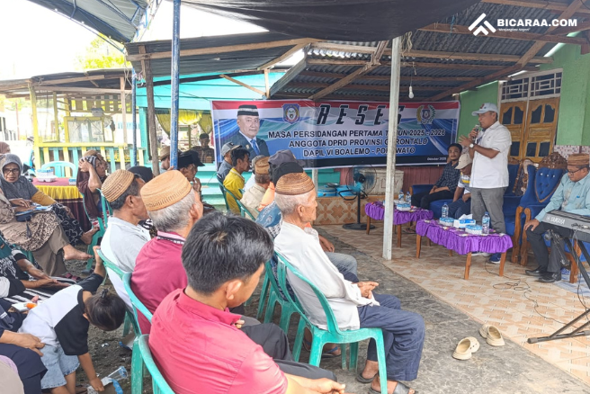 POHUWATO, BICARAA.COM –Ketua Komisi II DPRD Provinsi Gorontalo, Mikson Yapanto, dari Daerah Pemilihan VI Pohuwato–Boalemo, melaksanakan Reses Masa Persidangan Pertama Tahun Sidang 2025–2026 di Desa Dudewulo, Kecamatan Popayato Barat, Kabupaten Pohuwato, Jumat (24/10/2025).